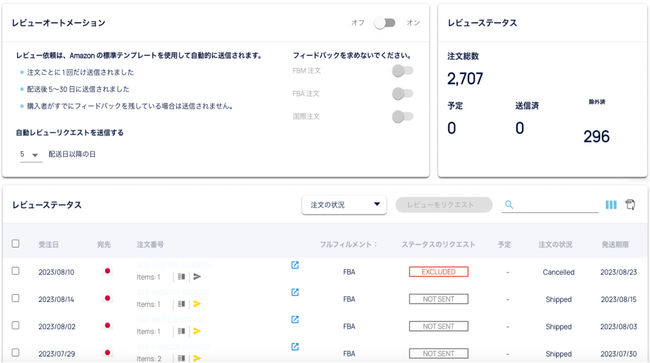 MerchantSpringでは、Amazonの顧客に商品レビューを自動的に依頼する機能を提供しています。この自動化機能はAmazonの利用規約に完全に準拠し、顧客のローカル言語で行われるレビュー依頼であり、Amazon広告・SEOの両方にとって重要な商品レビューをより効率的かつ効果的に集めることができます。