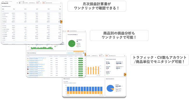 これにより、商品やカテゴリー別の売上や利益、広告パフォーマンスなどを見える化し、効果的な意思決定が可能です。