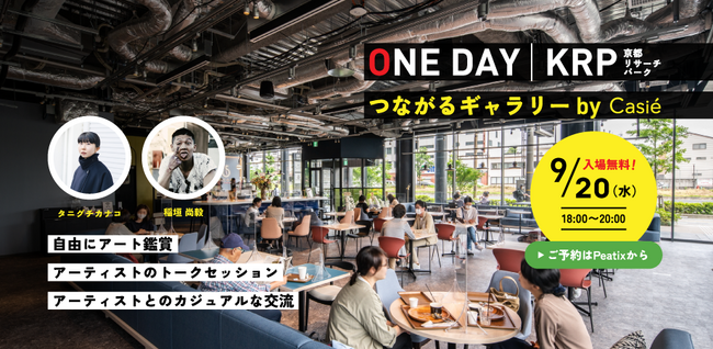 本プロジェクトは「表現者と未来の市場を切り拓く」をミッションとして掲げるCasieが、オフィス・ラボ賃貸、貸会議室に加え、起業家育成、オープンイノベーション支援、セミナー・交流イベントを開催しているKRPと京都を盛り上げていきたいという思いで合致し「日常とアートの新しい関わり方」を試行する取り組みとして実現しました。