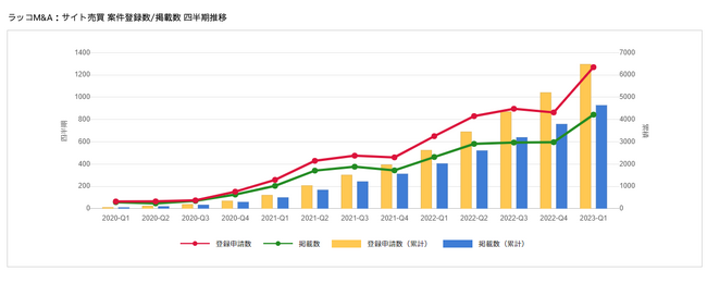 ラッコ株式会社(東京都渋谷区)が運営するサイト売買プラットフォーム『ラッコM&A』は、2023年3月に月あたりの案件登録数・掲載数・成約数・成約金額で過去最多を記録しました(2023年4月1日付)。