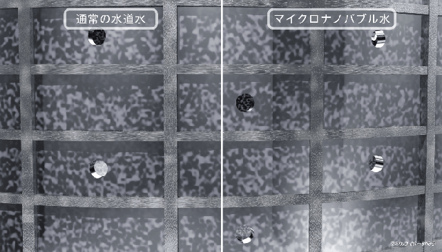 水の流路を独自形状にすることで約2.4億個のナノバブルが発生