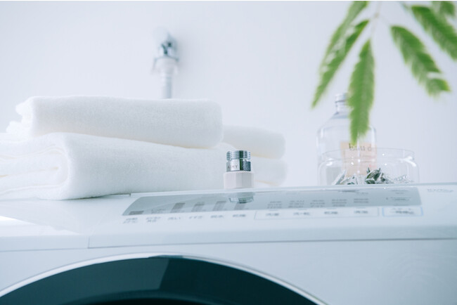キュっとひねって洗濯機に取り付けるだけで、洗濯時の洗浄力がアップ。