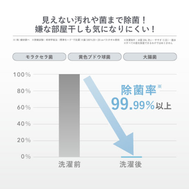 汚れやニオイの原因菌を残さず、洗濯のたびに洗濯槽の汚れまで洗い落とします。