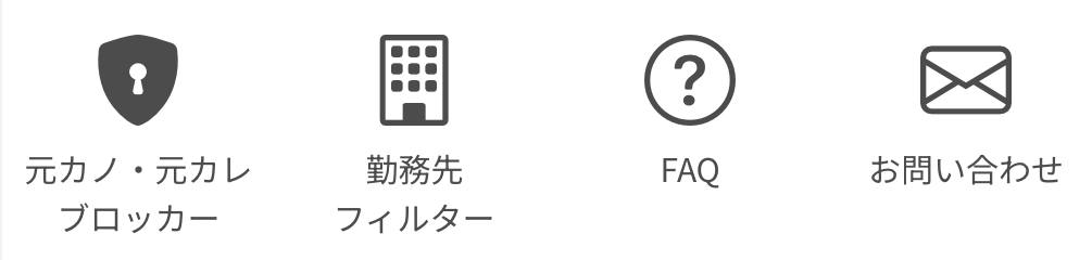 無償提供させていただきます「勤務先フィルター」は、勤務先に同一企業を設定しているユーザーを自動的にブロックする機能です。