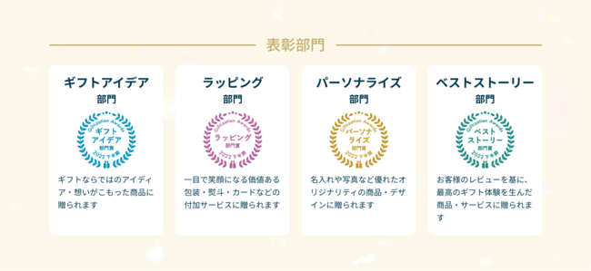 - ベストストーリー部門賞:お客様のレビューをもとに、最高のギフト体験を生んだ商品・サービスに贈られます。
