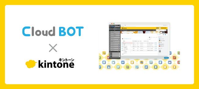 Webアプリをノーコードで作成できる業務改善プラットフォーム「kintone(キントーン)」とWebアプリを自動操作できる「クラウドBOT」はとても親和性が高く、両プロダクトを連携する事で飛躍的な業務効率の向上を実現します。