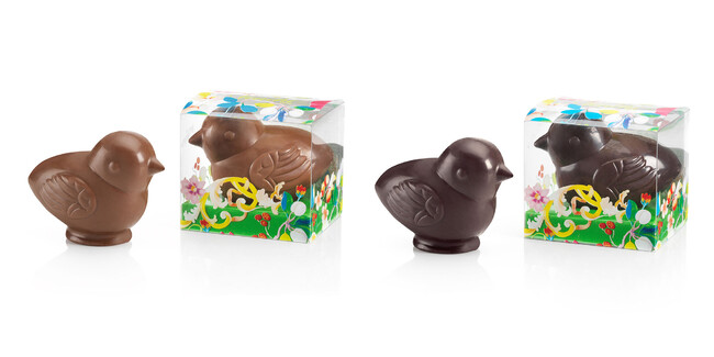 愛らしいひよこをかたどった60%のダークチョコレートのホロウ・フィギュア※。(オンラインストア限定)