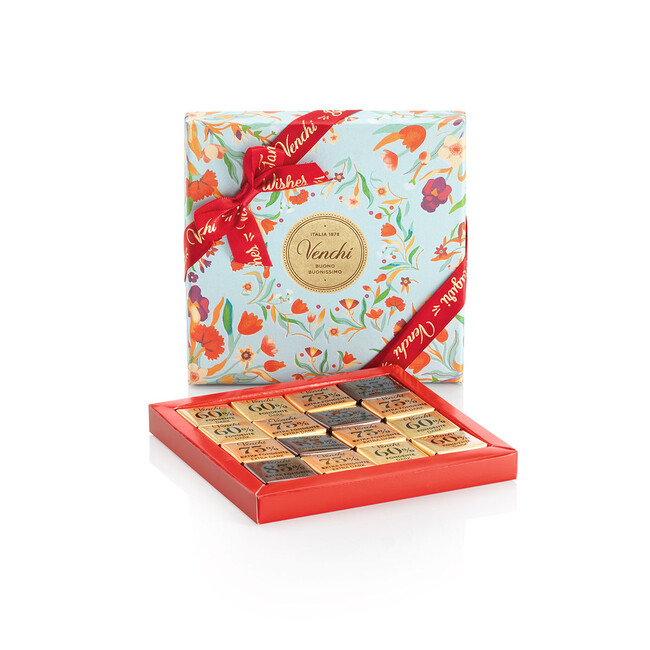 春を象徴する花々が咲き誇る期間限定のスクエアボックスに、カカオの風味をストレートに味わえるプレーンなチョコレート3種類16個を詰め合わせました。