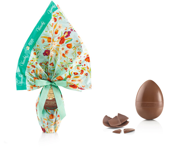 イースター気分を盛り上げるエッグ型のミルクチョコレート。軽く塩味を付けたクランチーな食感のピエモンテ産のヘーゼルナッツがぎっしりと混ぜ込まれています。