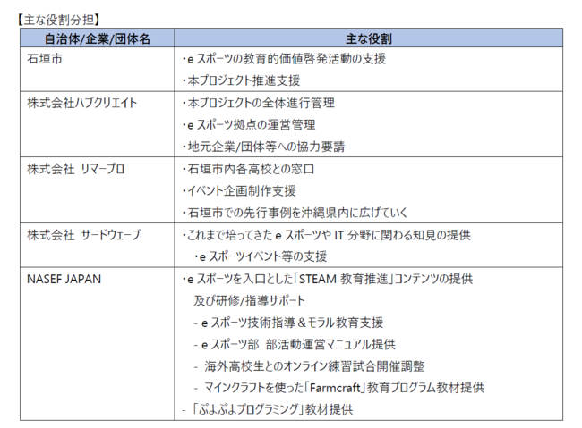 北米教育eスポーツ連盟(North America Scholastic Esports Federation:NASEF)は、eスポーツを通じて将来社会で活躍する人材を育成支援する国際団体です。現在は「eスポーツを入口としたSTEAM教育推進」に力を入れ、様々な教育プログラム コンテンツの開発を進めており、本プロジェクトでそのコンテンツの一部を初めて実践させていただきます。これまで私共が培ってきた知見やノウハウ・ネットワークを石垣市内の高校生や教育関係者の皆さんに提供し、「IT人材」「グローバル人材」育成のお手伝いをさせていただくとともに、石垣市プロジェクトの先進事例を全国各地に紹介し、全国にこの取り組みを広げていきたいと考えております。
