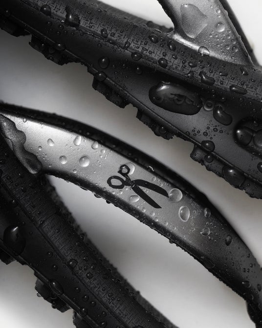 一体成形技術により耐久性と耐水性を高めた新ライン「unda EVA」もコラボデザインとなって新発売。シルバーのメタリックスプレー加工が施された鼻緒にはブランドを象徴するシザースマークが配されている。