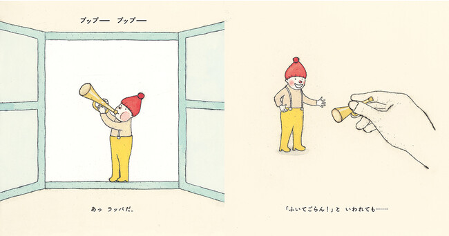 本書では、ちいさいあのこが、ちいさなラッパや、ちいさな魚、ちいさないろいろなものを持って、ひょっこりやってきます。あのこを通して、大好きな人を喜ばせたいと思う気持ちや、気にかけてくれる人がいる幸福を表現しています。