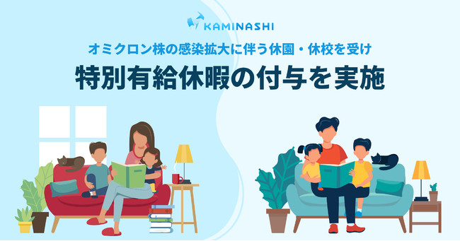 株式会社カミナシ(本社:東京都千代田区、代表取締役CEO 諸岡 裕人、以下「カミナシ」)は、オミクロン株の感染拡大に伴う保育園や学校等の休園・休校を受け、臨時措置として正社員を対象に特別有給休暇(以下、特別休暇)の付与を開始しましたのでお知らせします。