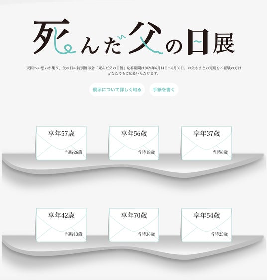 「死んだ父の日展」は、亡き父宛に想いを綴った手紙をウェブ上に匿名公開するオンライン展示会です。「お父さんありがとう」という言葉があふれる父の日に、喪失を抱える人の声は取り残されがちです。本展では、感謝だけでなく怒りや戸惑い、後悔なども含めた“今さら言いたいこと”を言葉にすることで、父との関係を静かに見つめ直す機会を提供します。
