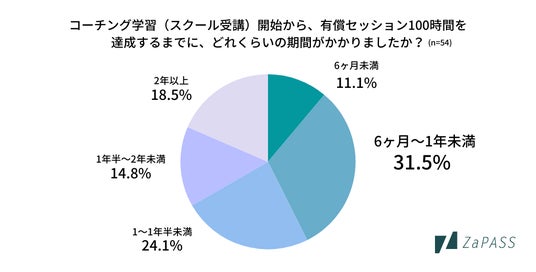 - 有償セッション100時間達成にかかった期間は「6ヶ月~1年未満」が最多