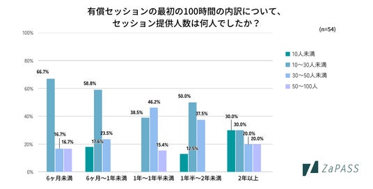- 最初の100時間の有償セッション提供人数は「10~30人未満」が最多