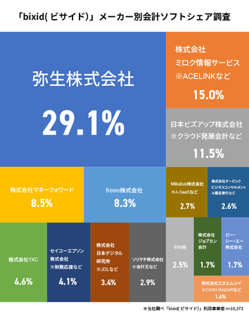 今回は『bixid(ビサイド)』(https://bixid.net/)を利用している10,373事業者を対象にユーザーの「利用会計ソフトメーカーおよび業種」に関する調査(以下、本調査)を実施しました。