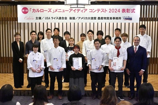 USAライス連合会日本代表事務所(本部:米国バージニア州)は、カリフォルニア産の中粒種のおコメ「カルローズ」を使用した第1回「カルローズ メニューアイディアコンテスト2024」の結果発表並びに表彰式を、11月13日に「八芳園」(東京都港区)にて行いました。