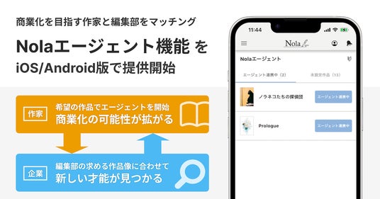 作家と企業をつなぐ創作プラットフォーム「Nola(ノラ)https://nola-novel.com/ (※1)」を運営する株式会社indent(本社:東京都千代田区、代表取締役社長:釜形勇気 以下、「indent」)は、6月24日(月)より、創作プラットフォーム「Nola」に、「Nola」で執筆した作品データを作家がワンタップで商業打診に向けてエージェント依頼をすることが出来る「Nolaエージェント機能」の搭載を開始いたしました。indentの「Nolaエージェントチーム」が、本機能の利用がオンになっている作品を確認し、商業提案可能な作品については当該作品のジャンルに合ったレーベルへ商業化に向けた打診を行います。これにより、小説投稿サイトに投稿されていない作品を含め、「Nola」で制作される最大150万超の作品から、新たなヒットIPが生まれるご縁の創出を目指してまいります。