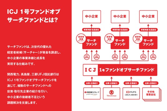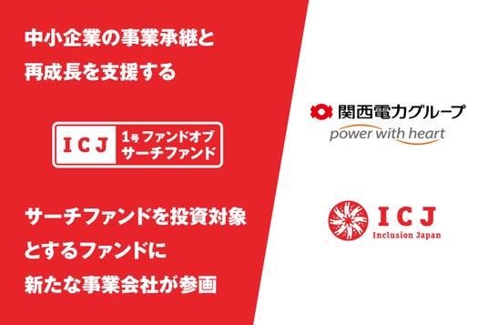 インクルージョン・ジャパン株式会社(以下 ICJ)が組成した、サーチファンドを投資対象とする「ICJ 1号ファンドオブサーチファンド投資事業有限責任組合(以下 本ファンド)」に対して、関西電力グループである合同会社K4Ventures(代表職務執行者 浜田 誠一郎、以下 K4V)が新たに出資参画したことをお知らせいたします。