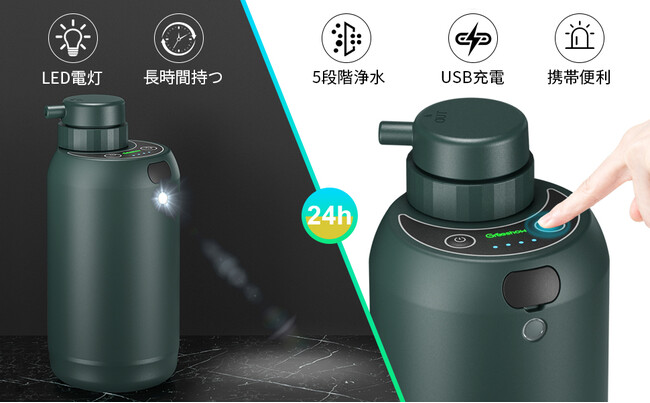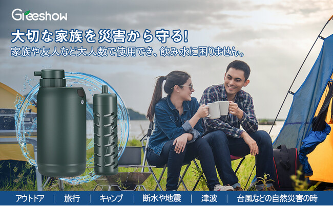 GreeShow携帯浄水器があれば、多層フィルターの浄水システムが細菌、ウィルスを除去して、清潔な飲料水にろ過してくれます。