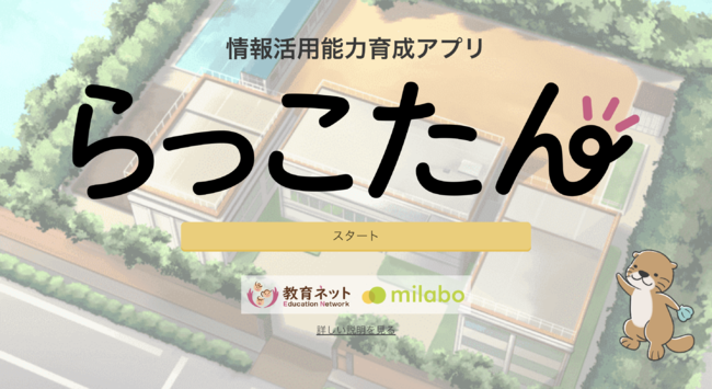 らっこたんとは、「株式会社 教育ネット」と「株式会社 ミラボ」が共同で開発している、情報活用能力を身につけることができるクラウド型デジタル教材です。AIを活用して、タイピングや情報活用に伴う基本的な知識を効率的に習得することができます。