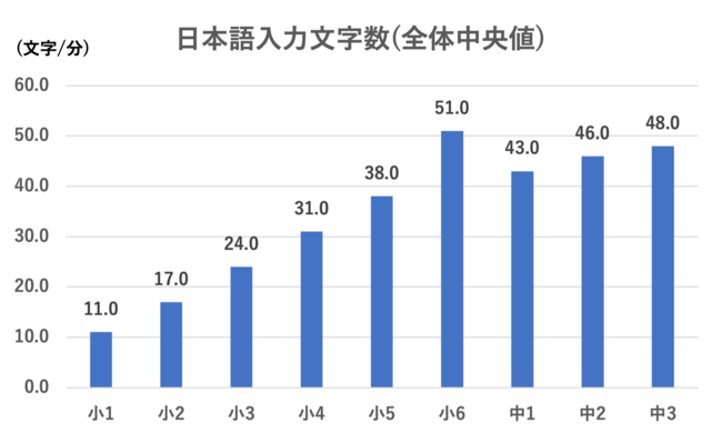 1分間あたりの入力文字数は、小学6年生は51文字、中学生は全学年で40文字以上