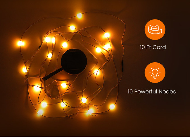 このストリングライトは収納ケースがあります。ケースの中にはセンターアクスルにストリングを巻き付けます。 ストリングライトは省エネのLEDを採用し電力消耗がすくない、何時間作業しても低発熱です。LEDライトは普通電球と比べて発熱量少なく、植物や環境や人などにも安全です。