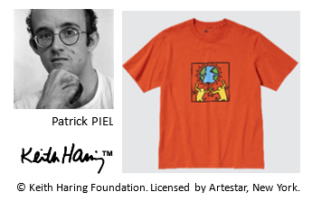 「キース・ヘリングは、世界平和を表すシンボルとしてこのTシャツをデザインしました。すべての人が地球の上で手を取り合って、平和のために立ち上がる姿を描いたものです。」