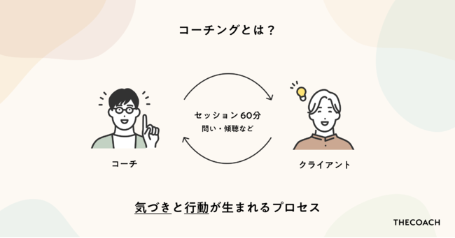 「コーチング」とは、コーチとクライアント(コーチングを受ける人)の対話によって気づきと行動が生まれるプロセスです。