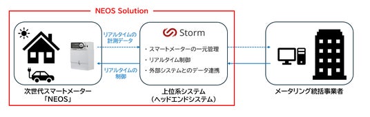 ・ 「NEOS Solution」は、エッジ・インテリジェンス機能を備えた次世代スマートメーター「NEOS」とクラウド型の上位系システム「Storm」(ストーム)で構成されます。