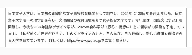 ※「次世代リーダーを目指す女性のためのDX人材育成コース(https://www5.jwu.ac.jp/gp/recurrent/DX/index.html)」の詳細は8月上旬公開予定