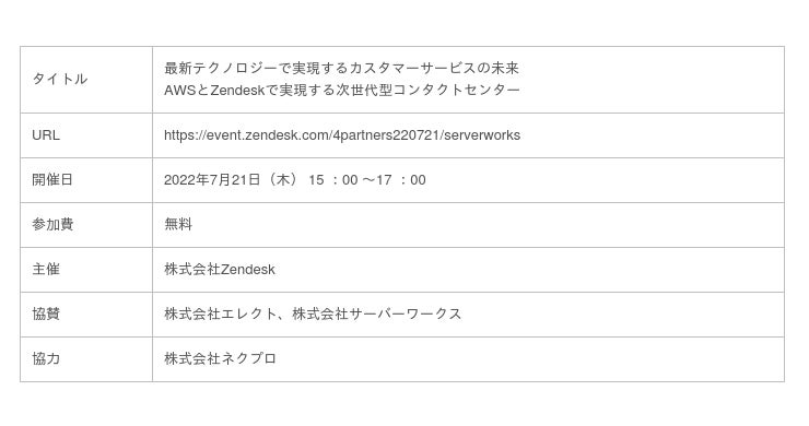 アマゾン ウェブ サービス(AWS)の AWS パートナーネットワーク(APN)※プレミアティアサービスパートナーである株式会社サーバーワークス(本社:東京都新宿区、代表取締役社長:大石良、以下:サーバーワークス)は、2022年7月21日に開催される株式会社Zendesk主催「最新テクノロジーで実現するカスタマーサービスの未来」にセッション登壇することをお知らせいたします。