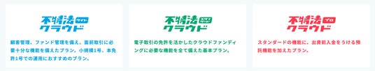『不特法クラウド』は、面前のみからクラウドファンディングまで、事業者の導入フェーズや事業規模に合わせた3つのプランをご用意しています。