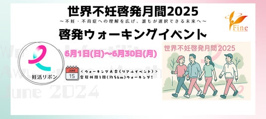 不妊治療患者をはじめ不妊・不育症で悩む人をサポートするセルフサポートグループ「NPO法人Fine(ファイン、以下「当法人」)」は、世界不妊啓発月間となる6月に、誰もが自分らしく選べる社会に向けて、啓発イベント『世界不妊啓発月間2025 ~不妊・不育症への理解を広げ、誰もが選択できる未来へ~』を専用アプリによるオンラインと対面でのリアルイベントにて実施いたします。