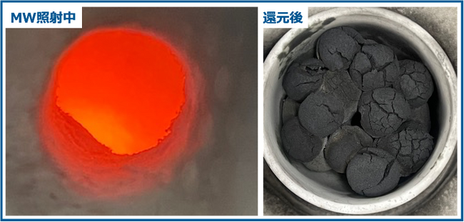 これまでマイクロ波での鉄鉱石の還元はスケールアップが課題でしたが、今回当社では、鉱山プロセス開発に向けたマイクロ波技術プラットフォーム“Green Mining-MX”を用いることで、その後の事業化の足掛かりとなるラボスケールでの鉄鉱石から鉄への還元に成功しました。鉄鉱石や、還元剤として用いられる石炭はマイクロ波を吸収しやすく、マイクロ波で直接加熱をすることで、消費エネルギーやCO2排出量を減少させることが可能です。本技術は水素やバイオマスなどを用いた還元にも適用することができ、鉄鋼業界におけるカーボンニュートラル実現に向けて有効と考えられます。