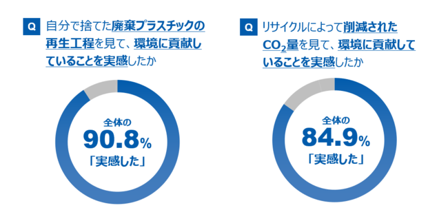 本実証において、商品のリサイクル率や来歴情報は、事業者のみならず消費者にとっても関心事であり、消費者が商品を安心して購入する際の基準の一つになりうることを明らかにしました。また、アプリケーションによる資源ごみ回収活動の記録・可視化は、消費者が自らの環境貢献の実感し、自分事として捉え、リサイクルに対する意識や行動を促すきっかけになりうることを確認しました。