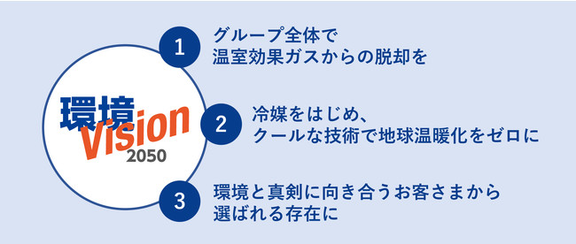 2050年にCO2排出ゼロ、冷媒漏洩ゼロにコミットすることが目標です。この目標達成に向けて、研究開発や設備投資を積極的に進めていきます。