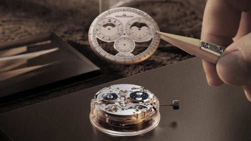 ジャガー・ルクルトは、2000 年代初期にこの問題に対する解を探求し、ついにデュオメトル機構を発明しました。2007 年に発表され、ジャガー・ルクルトが特許を取得したこの機構は、独立した 2 つの香箱と 2 つの独立した輪列が特徴です。一つの機構は脱進機(計時用)を動作させ、もう一つ の機構は複雑機構に動力を与えます。両方の機構は 1 つのキャリバーに組み込まれており、1 つの脱進機に接続されています。初めて、どんな複雑機構の動作にも損なわれることがないムーブメントの等時性(その「鼓動」の規則性)を保証することができました。