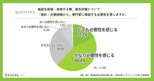 最後に、施設を新築・改修する際、衛生対策について設計・計画段階から専門家に相談する必要性を感じるかを尋ねました。