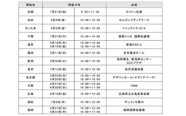 期間、横浜会場を皮切りに全国13会場で開催いたします。
