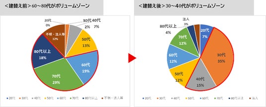 ●建替えの実施による組合員の世帯主年齢構成の変化