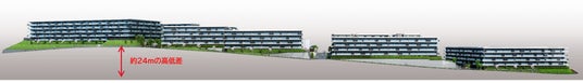 ◆バリアフリー動線:敷地高低差を解消するエレベーター連結設計により、高低差約24mの坂道の課題を克服