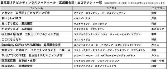 1階に位置するフードホールの名称を、地域の人にも親しみやすく覚えやすい「五反田食堂」に決定いたしました。オフィスビルや商店街、複数の大学も位置する活気にあふれた多彩な魅力を持つ五反田。そのマチで“多様な人が気兼ねなく過ごせる五反田のマチの食堂”をコンセプトにフードホールが誕生いたします。カウンター席やソファー席、様々な用途で利用できる座席を配置し、近隣の方々や、オフィスワーカー、ファミリーなど多様な人が、それぞれの時間を楽しんでいただけるようにいたしました。東京初出店の飲食店から五反田の名店まで、「五反田ならではの味」を持つバラエティ豊かなテナントが出店いたします。その日の気分に合った座席で過ごしていただける、マチに愛される場を目指します。