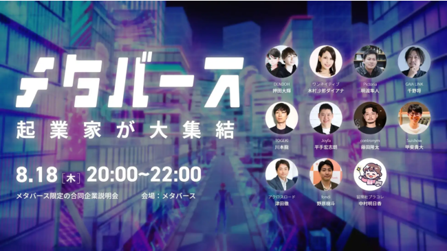 スタートアップ特化型SNS「PROTOOCL」が主宰するオンラインピッチプラットフォーム「PRO Pitch」上で、メタバース企業限定のオンライン合同説明会「PRO Pitch: Metaverse」が8月18日に開催されました。