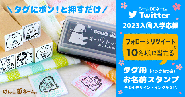 【キャンペーン概要】公式Twitterフォロー&リツイートで「タグ用お名前スタンプ」が、抽選で10名様に当たる♪