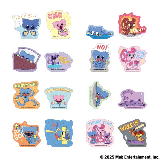 大人気ホラーゲーム「Poppy Playtime」から公式スタンプ柄のトレーディングダイカットステッカーが登場!人気のキャラクターたちが大集結した1セット2枚入りのトレーディングステッカーです。