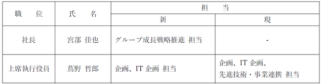 「グループ成長戦略推進室」の新設に伴い、「企画部 開発・投資イノベーション室」および「先進技術・事業連携チーム」を廃止、同組織へ統合します。