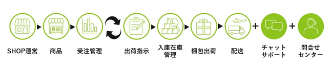 これは、Atouch内でECショップの開設・運営、決済、連携ロジスティクスによる配送だけでなく、チャットや問合せコールまで行える機能を使ったフルフィルメントサービスを利用したものです。