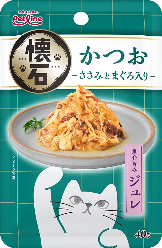 美味しさにこだわる「懐石」シリーズのレトルトがリニューアルします。嗜好性を高める工夫により、従来品よりも高い美味しさを実現する事ができました。使用シーンへの配慮や猫の好みに合わせて、フレーク・ジュレ・スープの3タイプをご用意しています。